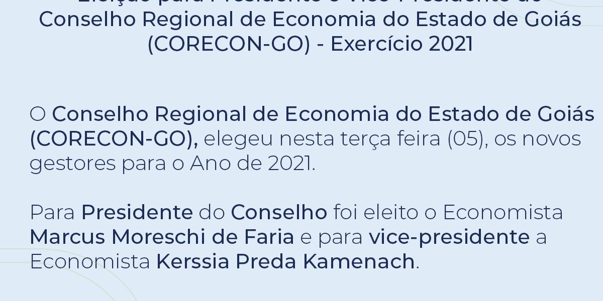 O Conselho Regional de Economia do Estado de Goiás, elegeu nesta terça-feira (05), os novos gestores para o ano de 2021.
